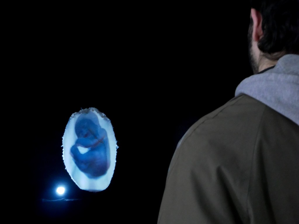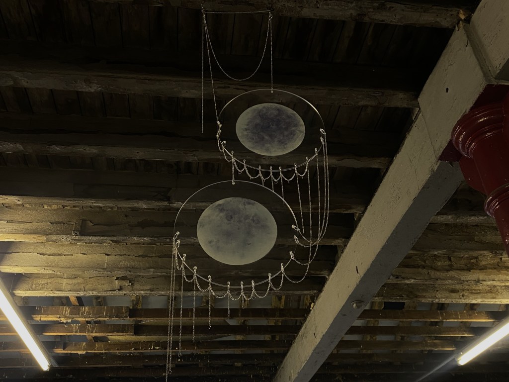 Returning to Leeds during the pandemic, Waterhouse became inspired by the Yorkshire landscape, particularly water. She continued her “video-drawings,” introducing projection and fabric—described as “the water’s costume.” In her second year, with full studio access, she developed more physical installations using fabric and projection. In January 2022, she exhibited this work in the FISHTANK exhibition, further expanding her interest in installation, lighting and textiles.
