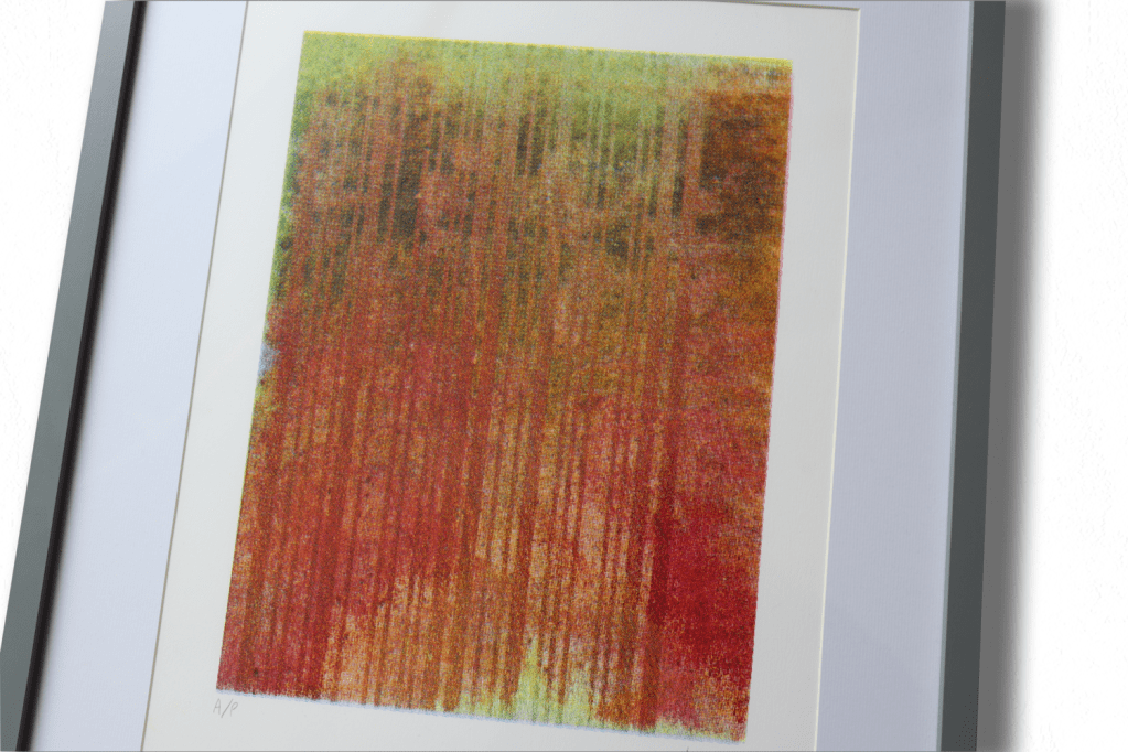 Framed and mounted A3 CMYK screen-print.