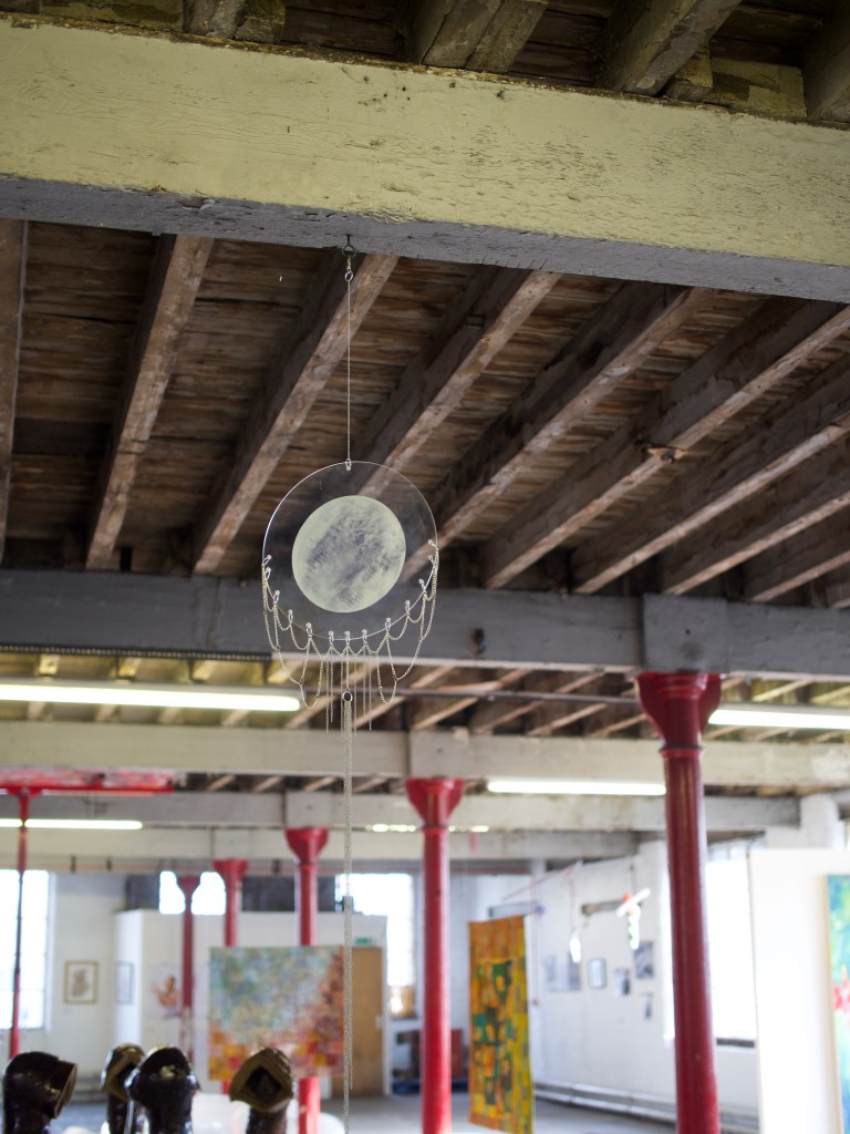 As the sunlight moves across the space, the performance of the sun creates a drawing upon the prints within the “sun-catchers” through exposure.