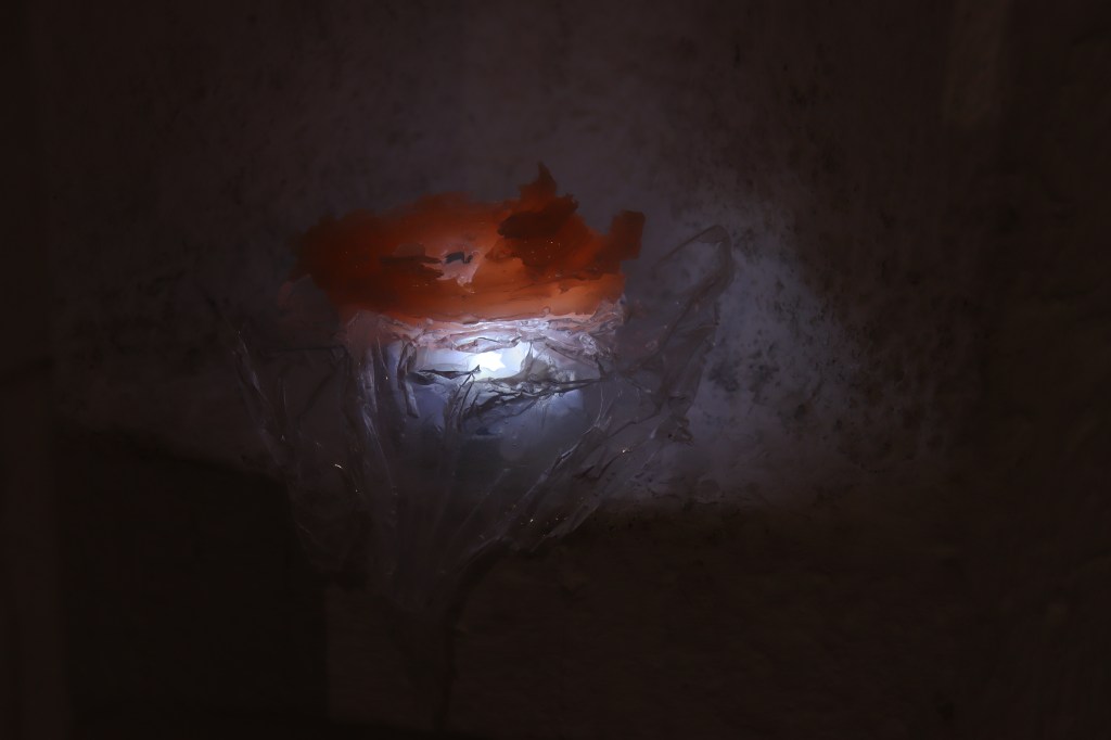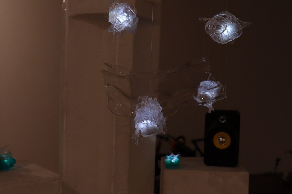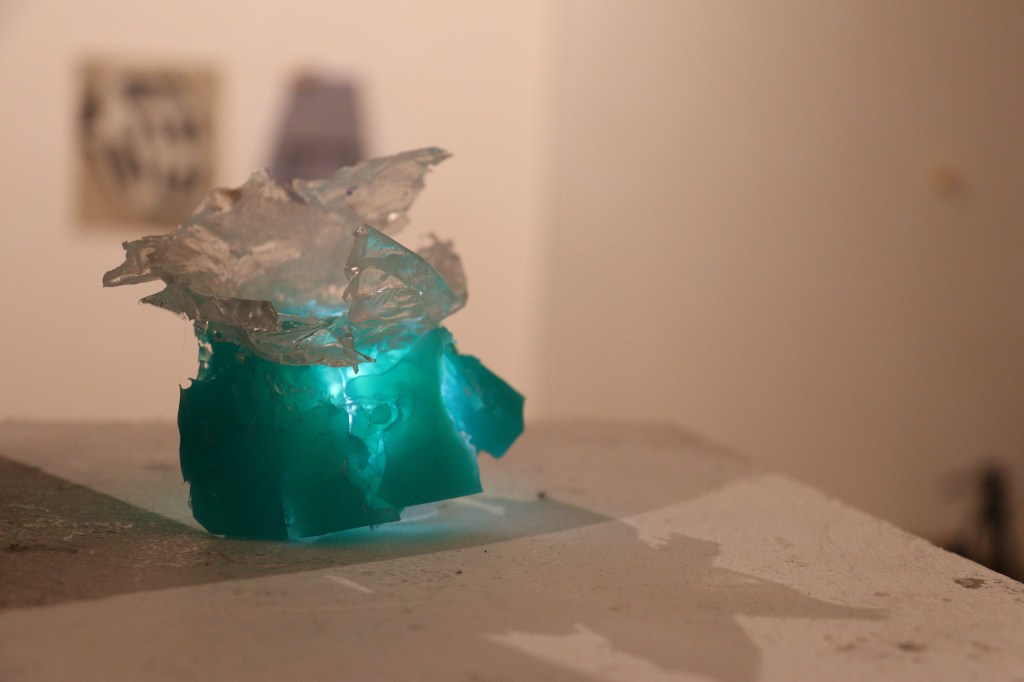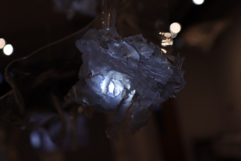 February 2023, resin, hot glue, perspex, silicone, LED lights and 5 minute sound piece.