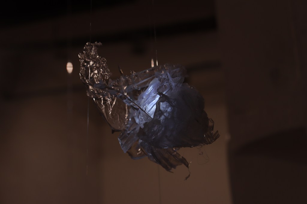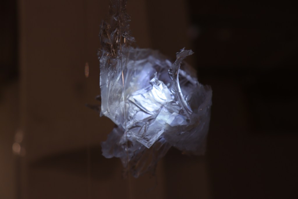 The sound of the flowing water and the subtlety of the twinkling splash sculptures relaxes the viewer. However the sporadic rhythms of my improvised percussion in the sound piece brings them back to reality.